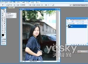 這是一幅模特站在街頭所拍攝的照片,為了突出模特的表情和氣質(zhì),我們將給這副照片增加暗角部分,并且要注意避免出現(xiàn)手臂和臉部顏色相差太大的情況出現(xiàn)。打開圖片,分別用橢圓選框工具(m)和磁性套索工具(l)圈出人臉和手臂部分。