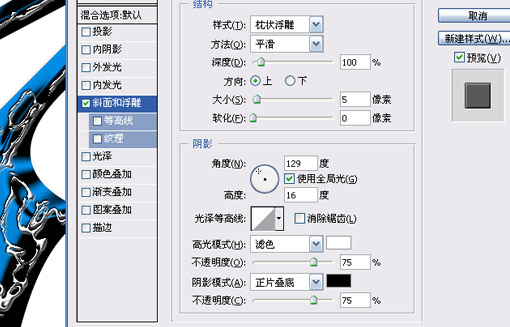 5.選擇v圖層,圖層樣式->斜面和浮雕,參數如下(大致跟問號一樣):