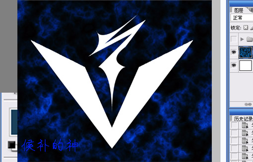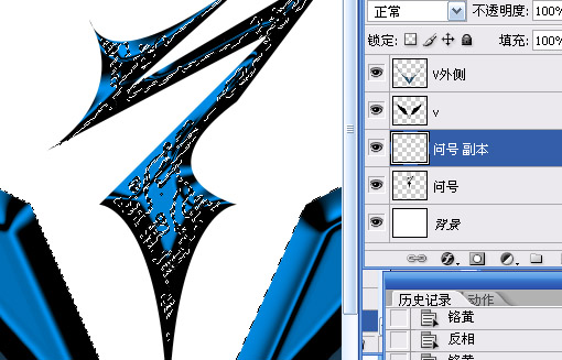 13.我們給logo加個光焰看看,執行復制問號/v/v外側3個圖層并合并,建立選區填充白色如下圖: