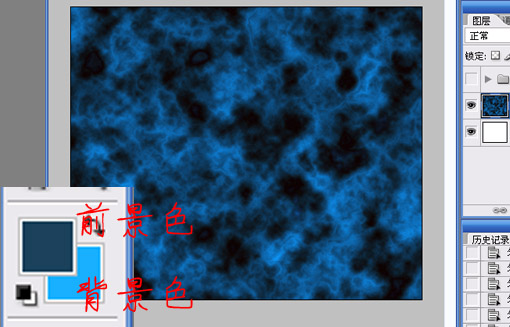 12.制作背景圖象,選擇好前/背景色,執行濾鏡->渲染->云彩->分層云彩(多執行幾次得到滿意效果),得到如下效