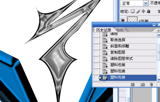 7.復制問號圖層并將圖層樣式刪除,執行濾鏡->藝術效果->塑料包裝(高光強度20,細節1,平滑度15)重復執行3次