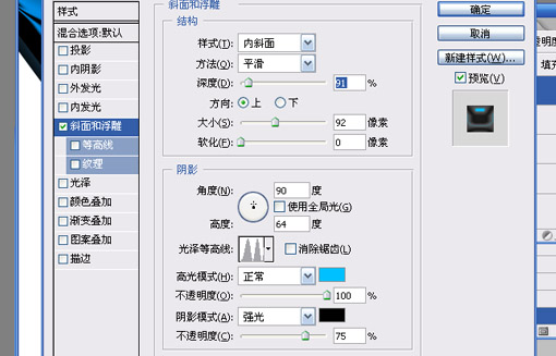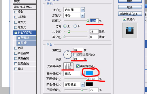 4.選擇問號圖層,圖層樣式->斜面和浮雕,參數如下: