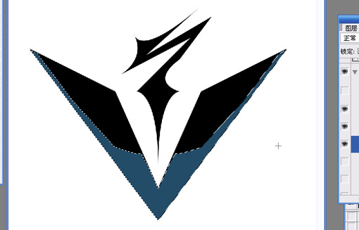 3.新建3個圖層,分別填充3個部分,問號與v用黑色填充,v外側用灰藍色填充.如下圖: