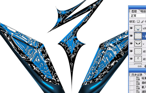 11.復制v圖層,然后將v圖層 副本按照7到10步也處理成類似效果,最終效果如下: