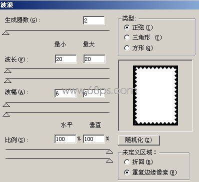 2.執(zhí)行菜單:濾鏡 > 扭曲 > 波浪 參數(shù)設(shè)置如圖2,效果如圖3