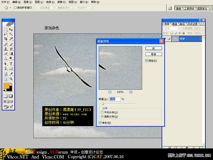 5.執行菜單:濾鏡 > 雜色 > 添加雜色 參數設置如下圖