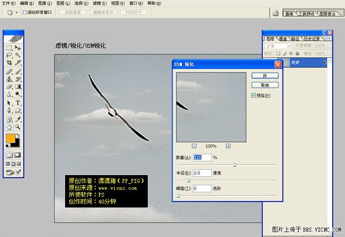 4.執行菜單:濾鏡 > 銳化 > usm銳化 參數設置如下圖