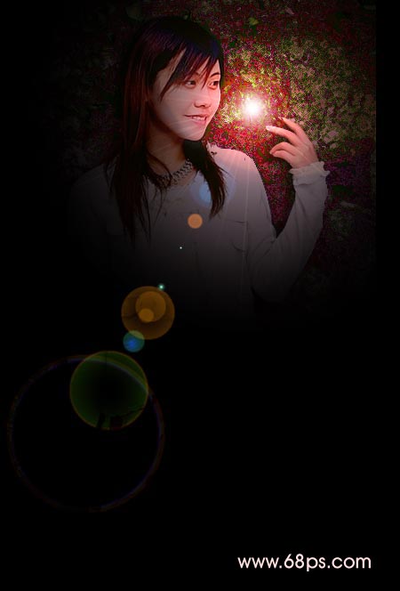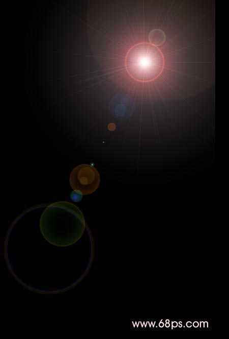 10.新建一個(gè)圖層填充黑色然后執(zhí)行菜單:濾鏡 > 渲染 > 鏡頭光暈,效果如圖14,然后把圖層混合模式改為“強(qiáng)光”效果如圖15,這個(gè)效果也非常藝術(shù),用來(lái)做簽名效果也不錯(cuò)。再把圖層不透明度改為:10%,效果如圖16