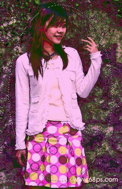 9.新建一個(gè)圖層按ctrl + shift + alt + ~ 調(diào)出高光選區(qū),然后填充顏色:#fef3fe,然后把圖層混合模式改為“色相”,圖層不透明度改為:30%,再加上蒙版把除人物臉的地方都擦除效果如圖13。