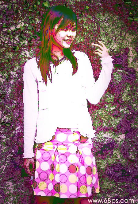 2.新建一個(gè)圖層,然后填充顏色:#fdc4f5,然后把圖層混合模式改為“差值”,效果如圖3