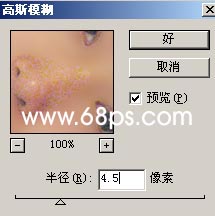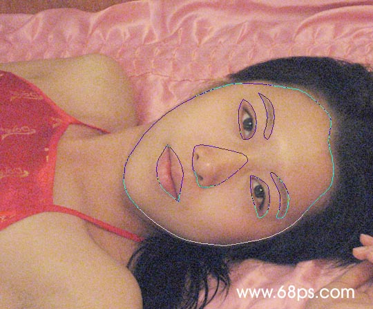 2.用鋼筆工具勾出臉部選區,鼻子、眼睛、眉毛、嘴巴等地方也要勾出來如圖4,按ctrl + enter 轉為選區,執行菜單:濾鏡 > 模糊 > 高斯模糊 數值為4.5效果如圖6。