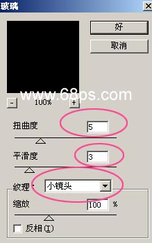2.執行菜單:濾鏡 > 扭曲 > 玻璃 參數設置如圖2,效果如圖3