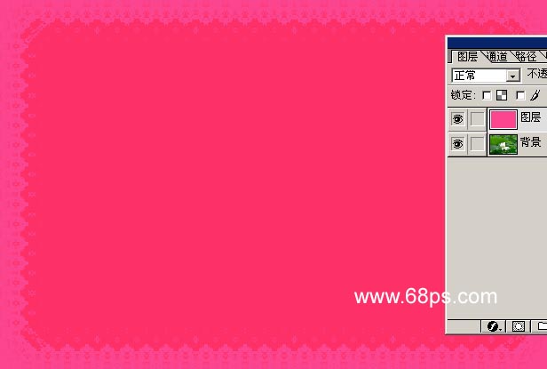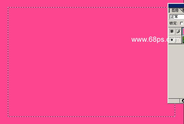 1.打開一張自己喜愛的圖片,新建一個圖層填充自己喜愛的顏色,然后用矩形選框工具繪制一個比畫面略小的選區如圖1,然后按"q"加上快速蒙版