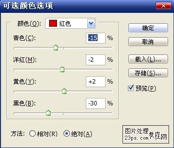 五.再建立一個可選顏色調整圖層.為什么我要建兩個,是因為一個可選顏達不到我想要的結果.