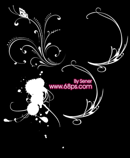 4.現在開始加花紋素材,打開素材4直接用魔術棒把素材勾出來拖進來,適當的給花紋加點漸變色。如果你想使用其他花紋請點這里下載。|||