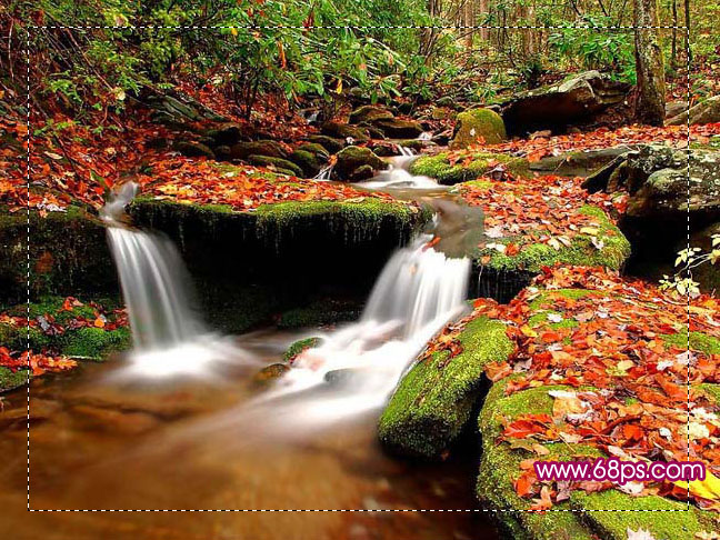 1.打開(kāi)一長(zhǎng)素材圖片用矩形選框工具框選比圖片略小的選區(qū)如圖2