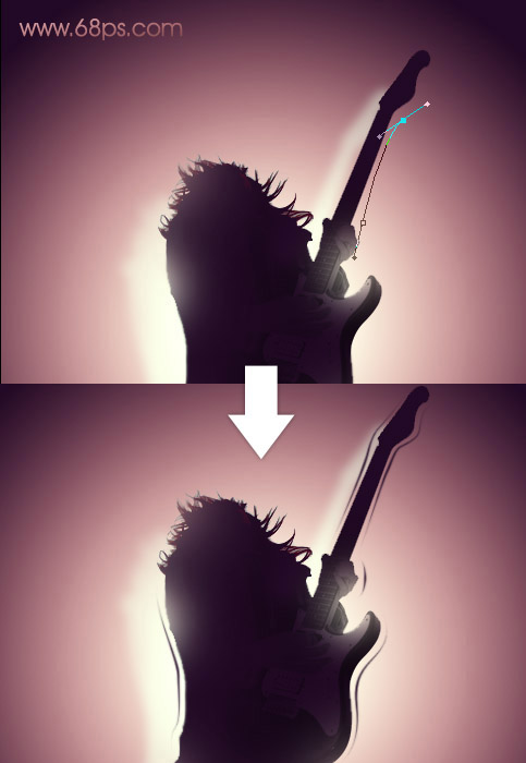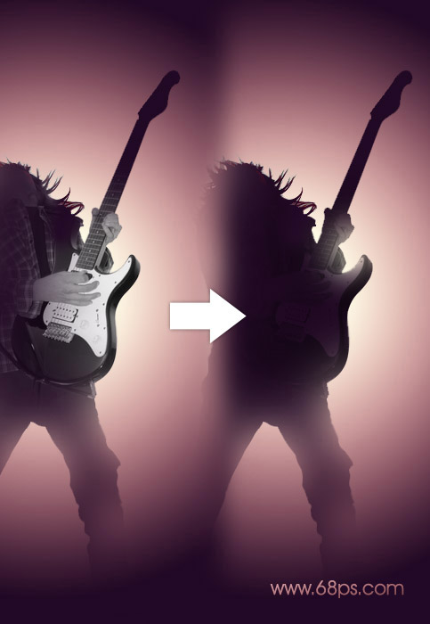 4.找一張類似的實物圖,主要是要有吉他的實物,放好位置加上蒙版用羽化的黑色畫筆工具涂抹只保留吉他中間的一部分如圖5,沒有實物圖可直接用下圖的素材