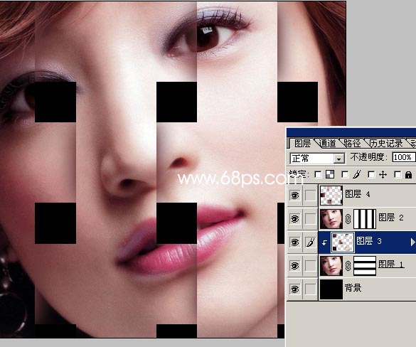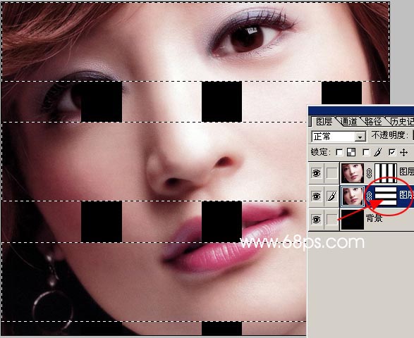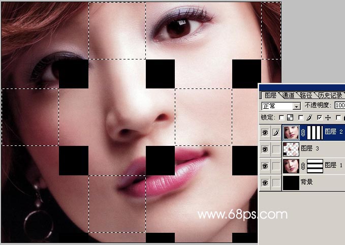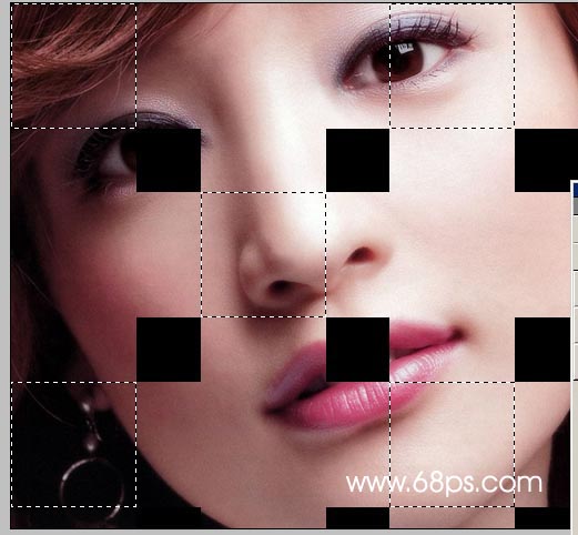 7.選區調好以后選擇矩形選框工具按住“alt”鍵盤按規律減去一些選區如圖9,然后直接按ctrl + j復制一層
