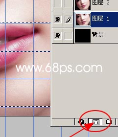 6.回到圖層1,按住ctrl點箭頭的位置調出圖層1的選區,然后同時按住ctrl + shift + alt點圖8箭頭的位置就可以得到圖8所示的效果。