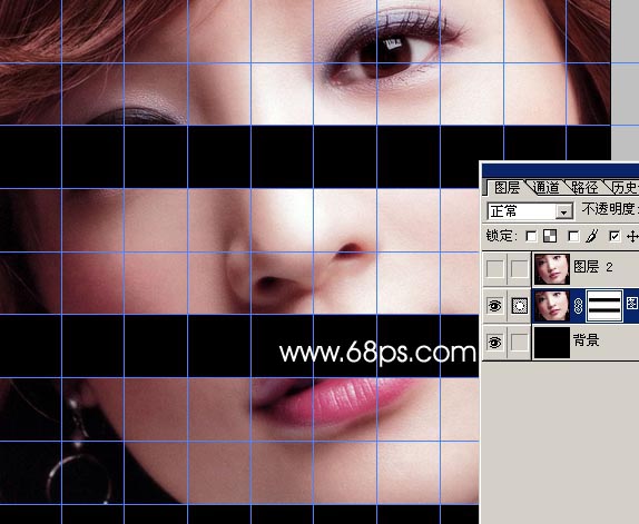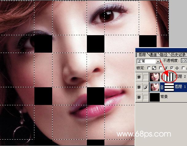 5.把圖層2顯示出來,同樣的方法我們制作一組豎的線條,效果如圖6