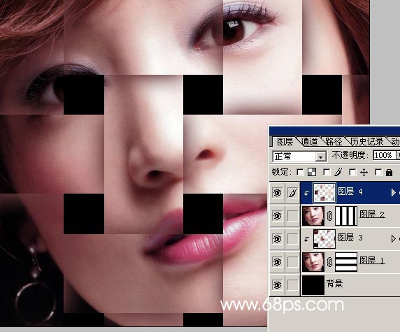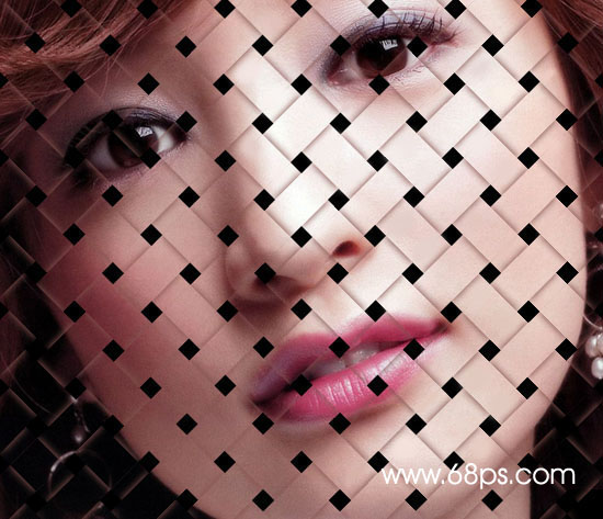 本教程主要是介紹一種類似編制效果的制作,思路:先把圖片按走向分成兩組:橫組和豎組。分的時候需要把圖片切成條形的,然后按照編織的交叉原理,我們把交叉后交點的圖片弄出來,然后按照上下圖層的方式再分出來(編織的時候線的走法是一上一下這樣才能連起來),最后加上陰影立刻就可以看到一件自己編織好的藝術品了!