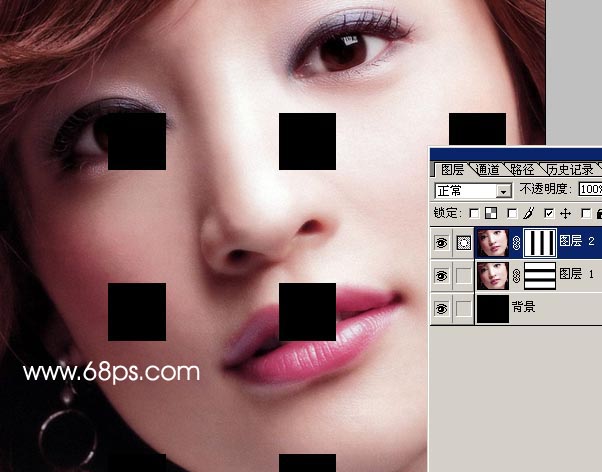 8.回到圖層2,同樣第6步的方法調出選區,然后按住“alt”鍵減去一些選區如圖10,然后按ctrl + j復制一層