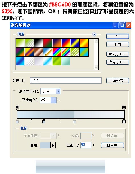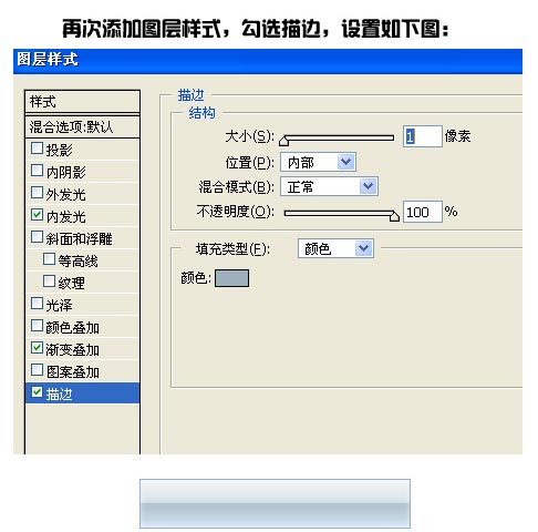5.繼續添加圖層樣式選擇描邊確定后完成最終效果。其它顏色的按鈕只要設置漸變的色彩就可以了。