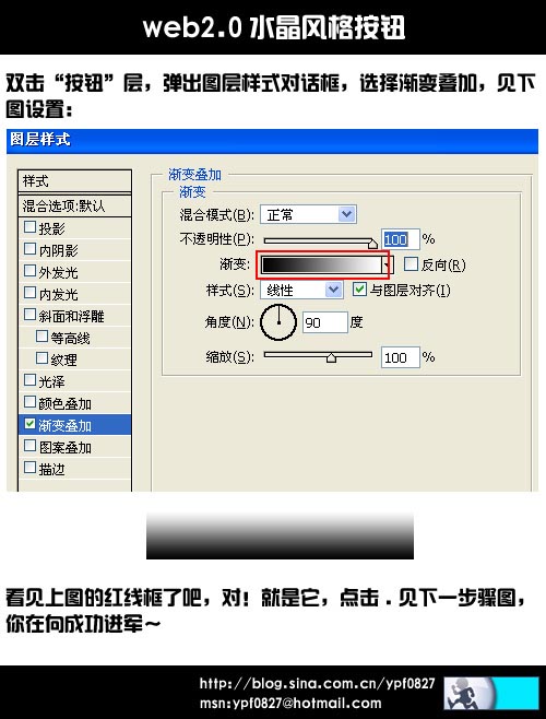 2.雙擊“按鈕”層,彈出圖層樣式對話框,選擇漸變疊加參數設置如下圖