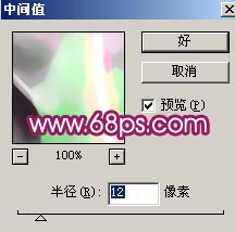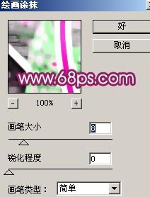 7.新建一個圖層按ctrl + shift + alt + e蓋印圖層,執行菜單:濾鏡 > 藝術效果 > 繪畫涂抹 參數設置如圖9,確定后再執行菜單:濾鏡 > 雜色 > 中間值,參數設置如圖10,確定后加上圖層蒙版用黑色畫筆把人物部分擦出來效果如圖11