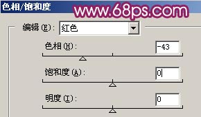 2.按ctrl + u 調色相/飽和度分別對青色和紅色進行設置如圖2,3,效果如圖4