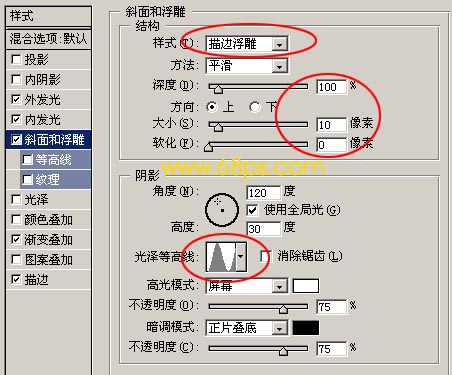 3.雙擊圖層選擇圖層樣式參數設置如圖3-7,確定后完成最終效果。