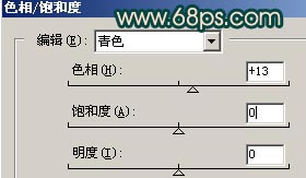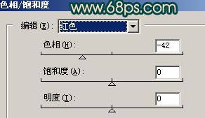 6.按ctrl + u調(diào)色相/飽和度,分別對紅色和青色進(jìn)行調(diào)整參數(shù)設(shè)置如圖8,9