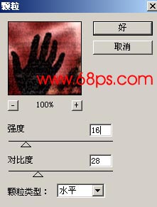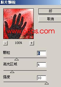 3.執行菜單:濾鏡 > 紋理 > 顆粒,參數設置如圖5,效果如圖6,然后把圖層混合模式改為“疊加”,完成最終效果。