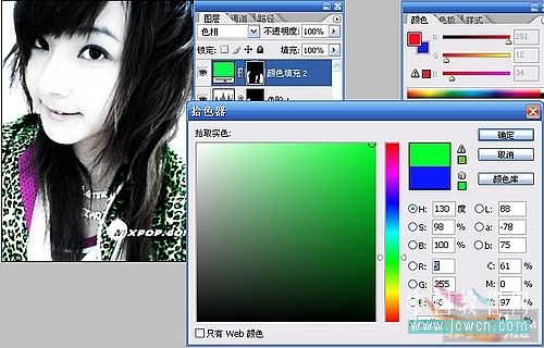 步驟14 突然感覺藍色不太好看,我還想繼續改變顏色。可是再重做一遍太麻煩了吧。別擔心, 片|qq空間|我有辦法。只要雙擊顏色調整圖層圖標,在打開的混色器里選擇一個喜歡的顏色就可以了。