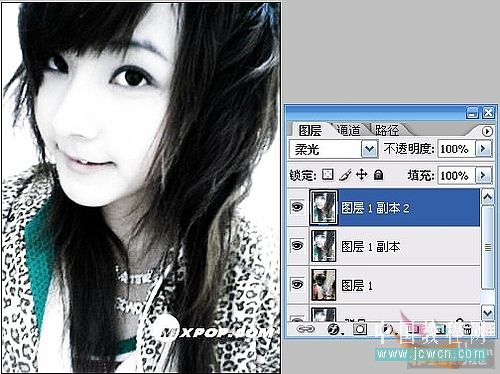 步驟5 選擇 圖層1副本 點ctrl+j 在復制一個圖層。 設為 柔光