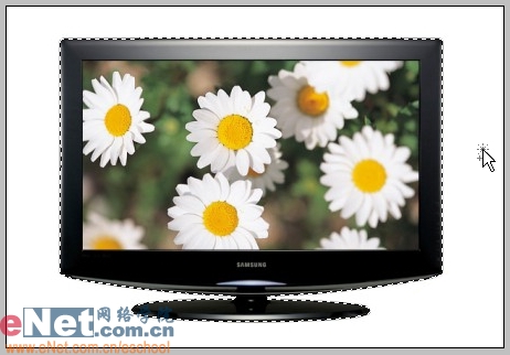 2、用魔棒工具在白色背景處點一下選中背景,然后ctrl+shift+i反選即可選中電視。