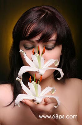 6.回到背景圖層按ctrl + j復制一層,按ctrl + m調(diào)曲線,把顏色調(diào)暗一點效果如圖7,然后加圖層圖層蒙版把臉上和花的位置擦出來效果如圖8