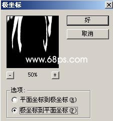 3.執(zhí)行菜單:圖像 > 旋轉畫布 > 逆時針90度,然后執(zhí)行菜單:濾鏡 > 扭曲 > 極坐標,參數(shù)設置如圖5