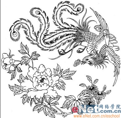 2、單擊工具箱中的魔棒工具,在圖片的空白處單擊建立選區,執行菜單欄中的“選擇”“選取相似”將圖片的白色部分選取,然后按ctrl+i鍵,反選選區,選擇黑色的圖案,選擇移動工具將圖案拖入文件中,效果如圖02所示。
