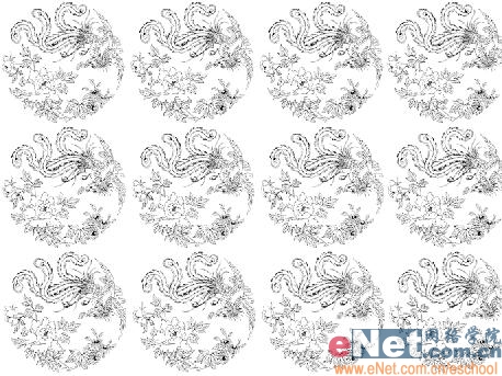 3、按住alt鍵的同時按向右方向鍵,輕移圖像,生成圖層1副本,按此方法在復制更多的圖案,合并所有圖層為圖層1,效果如圖03所示。