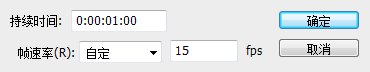 按鈕)中將動畫持續時間改為1秒,幀率改為15。如下圖所示。這樣動畫總共就是15幀。需要注意的是:由于幀數是從1開始,而時刻是從0開始,因此開始時刻即00:00就是第1幀,那么第15幀應位于00:14時刻,而非00:15。這個問題以前已經提到過,這里重復一下。