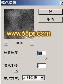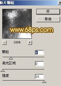 5.新建一個圖層,按字母“d”,把前背景顏色恢復到黑白,執行菜單:濾鏡 > 渲染 > 云彩,確定后按ctrl + alt + f加強一次,執行菜單:濾鏡 > 雜色 > 添加雜色,參數設置如圖8 ,確定后執行菜單:濾鏡 > 風格化 > 擴散,確定后執行菜單:濾鏡 > 藝術效果 > 膠片顆粒參數設置如圖9,確定后執行菜單:濾鏡 > 畫筆描邊 > 噴色描邊,參數設置如圖10,確定后把圖層混合模式改為“強光”,然后加上圖層蒙版把人物部分擦出來效果如圖11