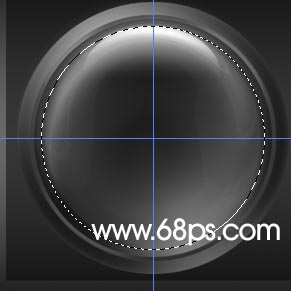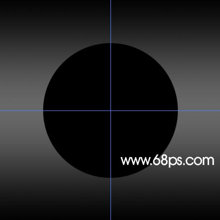 1.新建一個450 * 450像素的文件背景填充為灰色,然后拉出水平和垂直的兩條參照線,新建一個圖層以參照線交點為圓心,用橢圓選框工具繪制一個正圓然后填充黑色,不要取消選區(qū)效果如圖1