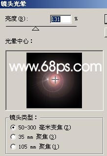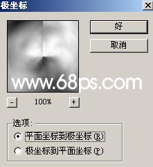 9.新建一個圖層填充為黑色,執(zhí)行菜單:濾鏡 > 渲染 > 鏡頭光暈參數(shù)設(shè)置如圖16,確定后按ctrl + shift + u去色,執(zhí)行菜單:濾鏡 > 扭曲 > 極坐標(biāo),參數(shù)設(shè)置如圖17,確定后按ctrl + f加強(qiáng)一次,效果如圖18