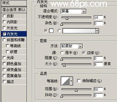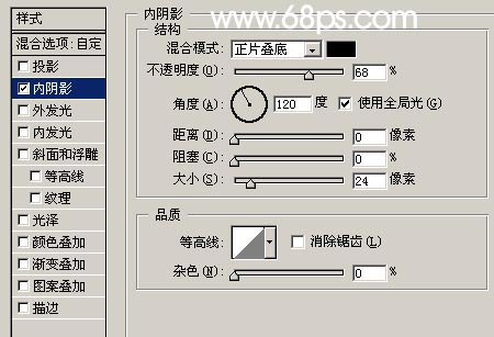 3.調(diào)出圖層樣式,參數(shù)設(shè)置如圖3,效果如圖4