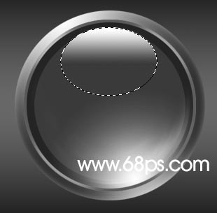 10.把圖層垂直翻轉(zhuǎn)一下(編輯 > 變換 > 垂直翻轉(zhuǎn)),然后改小一點,為了好跟按鈕的高光部位對齊可以把圖層透明度適當(dāng)調(diào)低一點,對齊以后用橢圓選框工具繪制一個正圓如圖19,按ctrl + shift + i反選按delete刪除,然后把圖層混合模式改為“濾色”,效果如圖20。