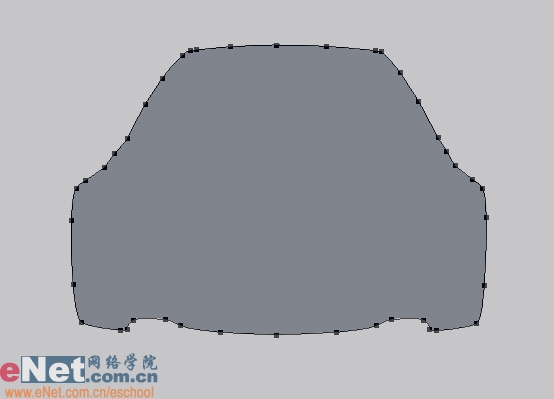 1.新建文件,將背景層的顏色改為淺灰色,然后新建一個圖層,用鋼筆工具勾出汽車的大的輪廓,接著將路徑填充車體的淺藍色。