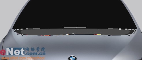 30.使用加深工具對車頂的暗部進行涂抹,然后用減淡工具涂出亮部并勾出圖中的那兩條路徑,用黑色描邊。