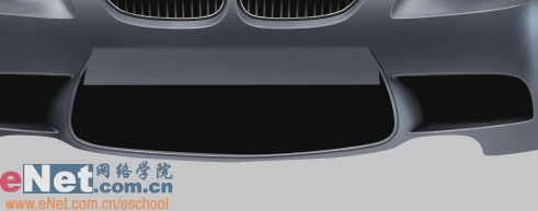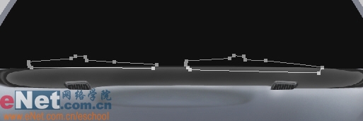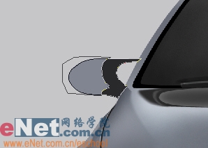 11.在車進氣口部分用路徑勾出如下圖所示的形狀,新建圖層,然后將路徑填充黑色,然后再用加深減淡工具對周圍的部分進行涂抹。