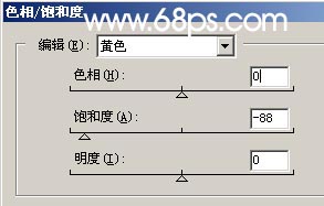 4.創建色相/飽和度調整圖層,對黃色進行調整,參數設置如圖3,效果如圖4